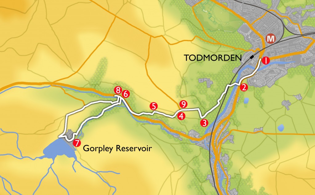 - Turn left ( Morrisons is on the right) and walk back to Todmorden Town Centre.